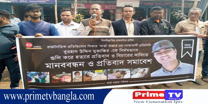 সাংবাদিক বুরহান উদ্দিন মুজাক্কিরকে নির্মমভাবে গুলি করে হত্যার প্রতিবাদ ও বিচারের দাবিতে লালমনিরহাটে মানববন্ধন ও প্রতিবাদ সমাবেশ অনুষ্ঠিত হয়েছে।
